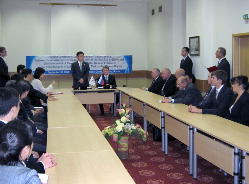 ÀÌÀ±È£ Áö½Ä°æÁ¦ºÎ Àå°üÀº 2008. 9. 30(È­,ÇöÁö½Ã°£) 11:30 ¸ð½ºÄÚ¹Ù ¼¼°è¹«¿ª¼¾ÅÍ¿¡¼­ ºü¸£È£¸àÄÚ ¸ð½ºÄÚ¹ÙÁÖ ºÎÁö»ç¿Í ¸ð½ºÅ©¹Ù ÁÖÁ¤ºÎ°¡ Á¦¾ÈÇÑ Çѱ¹±â¾÷Àü¿ë°ø´Ü¿¡ ´ëÇÏ¿© »óÈ£°£ »ç¾÷ÃßÁø ÀÇÁö ¹× ½Å·Ú¼º È®ÀÎ µî »ç¾÷ÃßÁø ¿øÈ°È­ µµ¸ð¸¦ À§ÇÑ¡º¸ð½ºÅ©¹ÙÁÖ Çѱ¹±â¾÷Àü¿ë°ø´Ü ¼³Ä¡ Çù·Â¿¡ °üÇÑ MOU ü°á¡»½ÄÀ» °¡Á³´Ù.