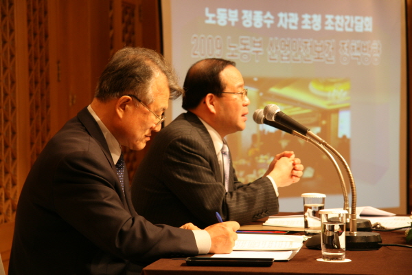- ³ëµ¿ºÎ Á¤Á¾¼ö Â÷°ü Á¶Âù°£´ãȸ ÁÖÁ¦ : »ê¾÷ÀçÇØ°¨¼Ò¿Í ¾ÈÀüº¸°ÇÇàÁ¤ ¼±ÁøÈ­¸¦ À§ÇÑ »ê¾÷¾ÈÀüº¸°ÇÁ¤Ã¥ ÃßÁø¹æÇâ [2009³â 2¿ù25ÀÏ ½Å¶óÈ£ÅÚ]
