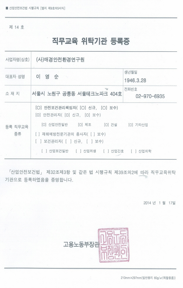 ¸Å°æ¾ÈÀüȯ°æ¿¬±¸¿ø °í¿ë³ëµ¿ºÎ Á÷¹«±³À° À§Å¹±â°ü ÁöÁ¤